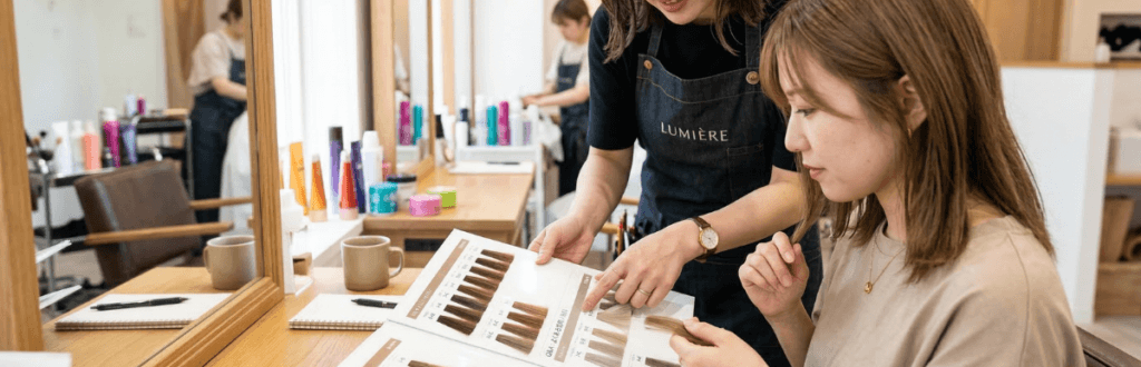 赤・オレンジ系のカラーが強く残っている場合、しっかりと色味を消したかったらカラーシャンプーでのケアよりも先に、美容室で一度ベースを整えてもらう方が根本的な解決につながります。