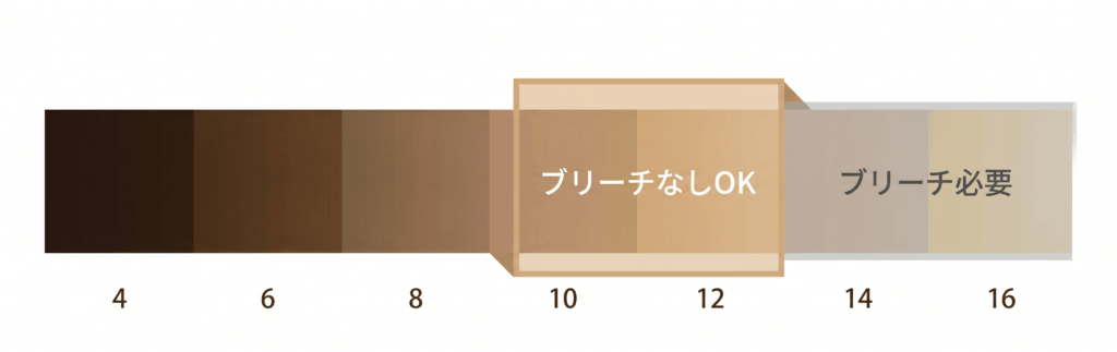 ただし実際にできるのは暗めタイプ(10〜12レベル・ベージュブラウン寄り)までになってきます。