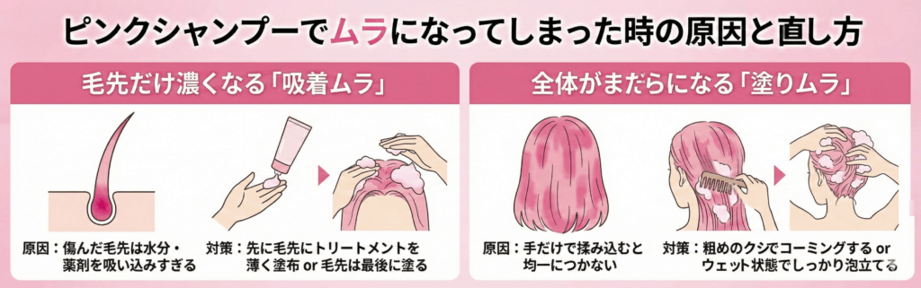 ピンクシャンプーでムラになってしまった時の原因と直し方