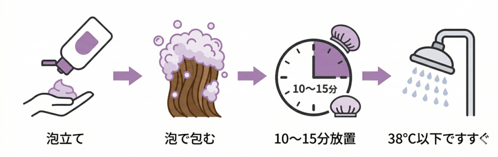 さっと洗い流すだけ使い方では色素が馴染む前に流れてしまいます。