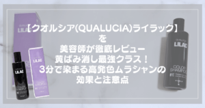 パープルとの違いは「ラベンダーとしての色味の深さ」で、パープルが黄ばみ消しメインなのに対して、ライラックはラベンダーアッシュやラベンダーピンクなど紫系カラーの色味補充に最適です。